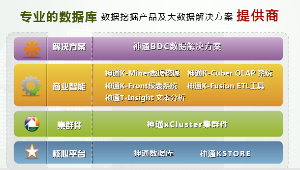 神舟通用公司主營(yíng)業(yè)務(wù)主要包括神通關(guān)系型通用數(shù)據(jù)庫(kù)、神通KStore海量數(shù)據(jù)管理系統(tǒng)、神通xCluster集群件、神通商業(yè)智能套件等系列產(chǎn)品研發(fā)和市場(chǎng)銷售。基于產(chǎn)品組合,可形成支持交易處理、MPP數(shù)據(jù)庫(kù)集群、數(shù)據(jù)分析與處理等解決方案。公司擁有40余名實(shí)戰(zhàn)經(jīng)驗(yàn)豐富的中高級(jí)數(shù)據(jù)庫(kù)技術(shù)服務(wù)人員,可提供數(shù)據(jù)庫(kù)系統(tǒng)調(diào)優(yōu)和運(yùn)維服務(wù)。公司客戶主要覆蓋政府、電信、能源、交通、網(wǎng)安、國(guó)防和軍工等領(lǐng)域,率先實(shí)現(xiàn)國(guó)產(chǎn)數(shù)據(jù)庫(kù)在電信行業(yè)的大規(guī)模商用。